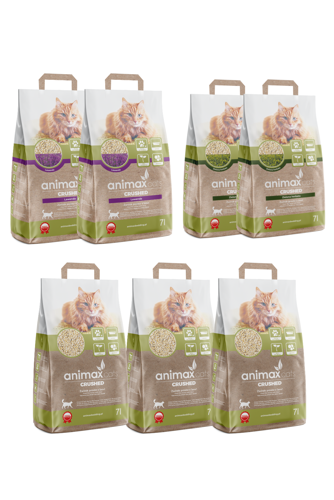 Zawartość zestawu : 3 x Animax Cats Kruszon 2 x Animax Cats Kruszon Lawenda 2 x Animax Cats Kruszon Zielona Herbata