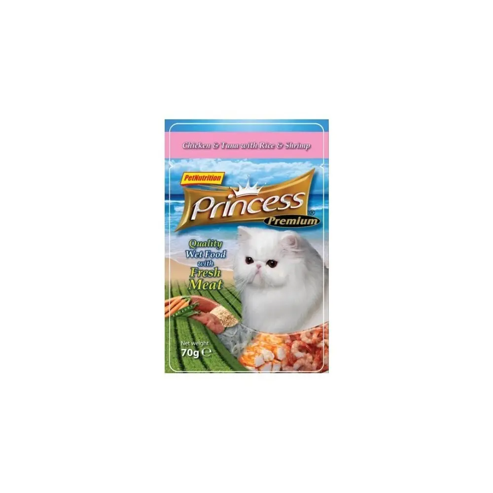 Princess Premium Saszetka Kurczak Krewetki 70g mokra karma dla kota Wyjątkowa jakość PRINCESS PREMIUM jest gwarancją doskonałego pożywienia dla kociąt, dorosłych i starszych kotów- 54% świeżego, naturalnego mięsa, bogatego w składniki odżywcze aby zapewnić jak najlepsze działanie systemu immunologicznego, ułatwić trawienie oraz zapewnić jak najlepszą ochronę przed codziennym stresem i infekcjami. Szeroki wybór niezwykle smakowitych receptur zaspokaja wszelkie wyjątkowe potrzeby kotów. Twój kot jest dla nas numerem jeden…. ….. ponieważ nam zależy Ponieważ nam zależy.. … musisz to wiedzieć Wybierając PRINCESS PREMIUM wprowadzasz swojego kota w świat unikalnej, kompletnej, zdrowej żywności, która odpowiada jego naturalnej diecie. Nasza troska, zrozumienie potrzeb kotów zgodnie z hasłem „ jesteś tym co jesz” gwarantuje, że karmy PRINCESS zapewniają różnorodność i równowagę żywieniową na każdym etapie życia kota. Ponieważ nam zależy … … nie zostawiamy nic przypadkowi Karmy PRINCESS PREMIUM są koncentracją najwyższej jakości protein połączonych ze zdrowymi składnikami odżywczymi. Zostały dokładnie przebadane, przechodząc serię testów dających nam pewność, że zawierają wszystkie zadeklarowane przez nas składniki oraz, że pozbawione są sztucznych aromatów, barwników i konserwantów. Cała gama naturalnych, mokrych karm zapewnia kotom pełne, zbilansowane pożywienie na każdym etapie życia, a ich właścicielom komfort karmienia produktami o najwyższej jakości, mającymi dobroczynny wpływ na zdrowie i kondycję zwierzęcia. Ponieważ nam zależy… … nie mamy nic do ukrycia Wiele badań i wysiłku zostało włożone podczas dobru składników do naszych produktów, a informacje o nich pozwolą zrozumieć korzyści jakie płyną z nich dla naszych zwierząt. Mięso – dla jak największej wartości odżywczej, o jakości takiej samej jak mięso przeznaczone dla ludzi. Mięso, którego używamy w naszych karmach spełnia najwyższe możliwe standardy i jest akceptowane przez weterynaryjne normy prawne UE wynikające z certyfikatów IFS (International Foods Standard). Naturalne składniki, w skład, których wchodzą mieszanki warzyw, witamin, ziół, ekstraktów roślinnych i owocowych zapewniają bogatą suplementację i wiele korzyści dla organizmu.